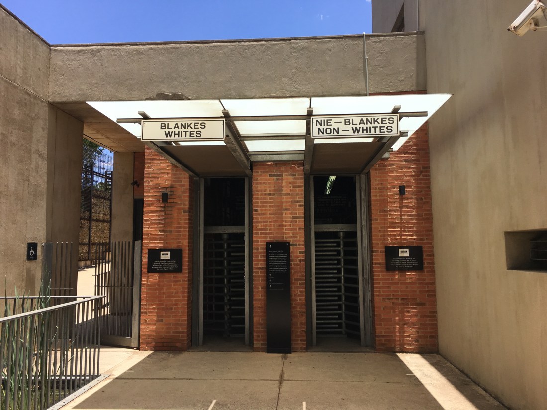 On Thursday, we decided we would visit the Apartheid Museum, so we had a gentle start to the day before driving across Johannesburg to get there. Interestingly, the museum came into being as a result of the process for granting casino licenses. To be awarded a license, bidders had to demonstrate how they would improve tourism and the local economy, which is why the museum neighbours a casino.